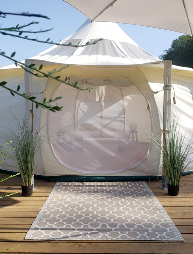 Notre tente saharienne Lotus est conçue pour offrir intimité, confort et harmonie avec l’environnement.